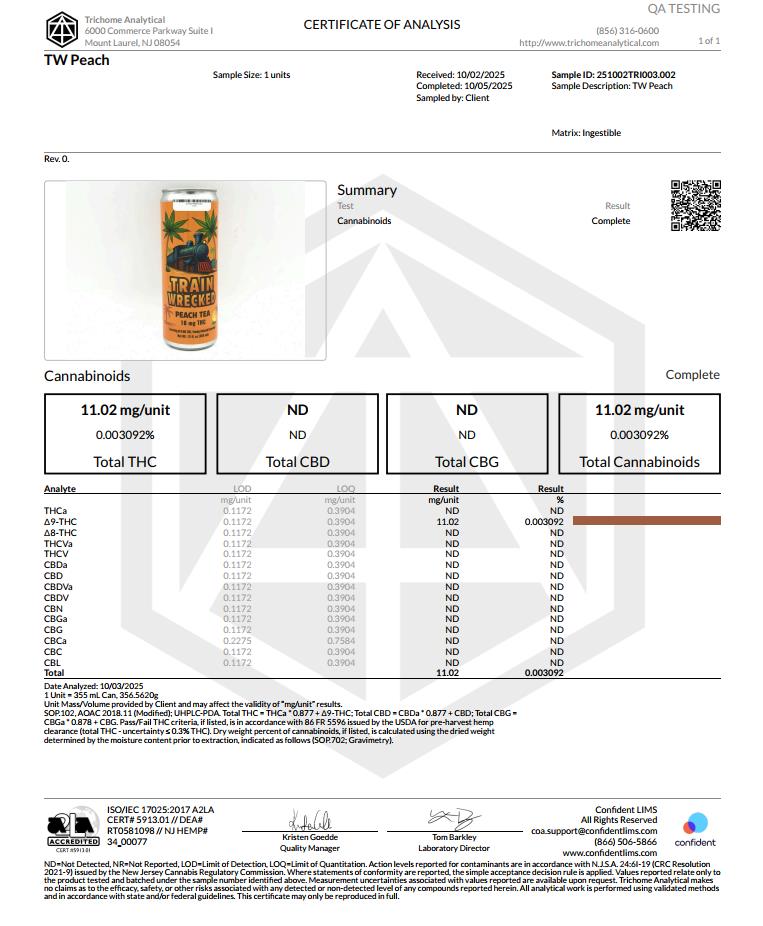 We created Train Wrecked for the moments you want to unwind, laugh harder, and feel a little lifted with no alcohol required. Each can blends 10mg of premium Delta-9 THC with natural flavors and real cane sugar for a smooth, hangover free way to catch a buzz!